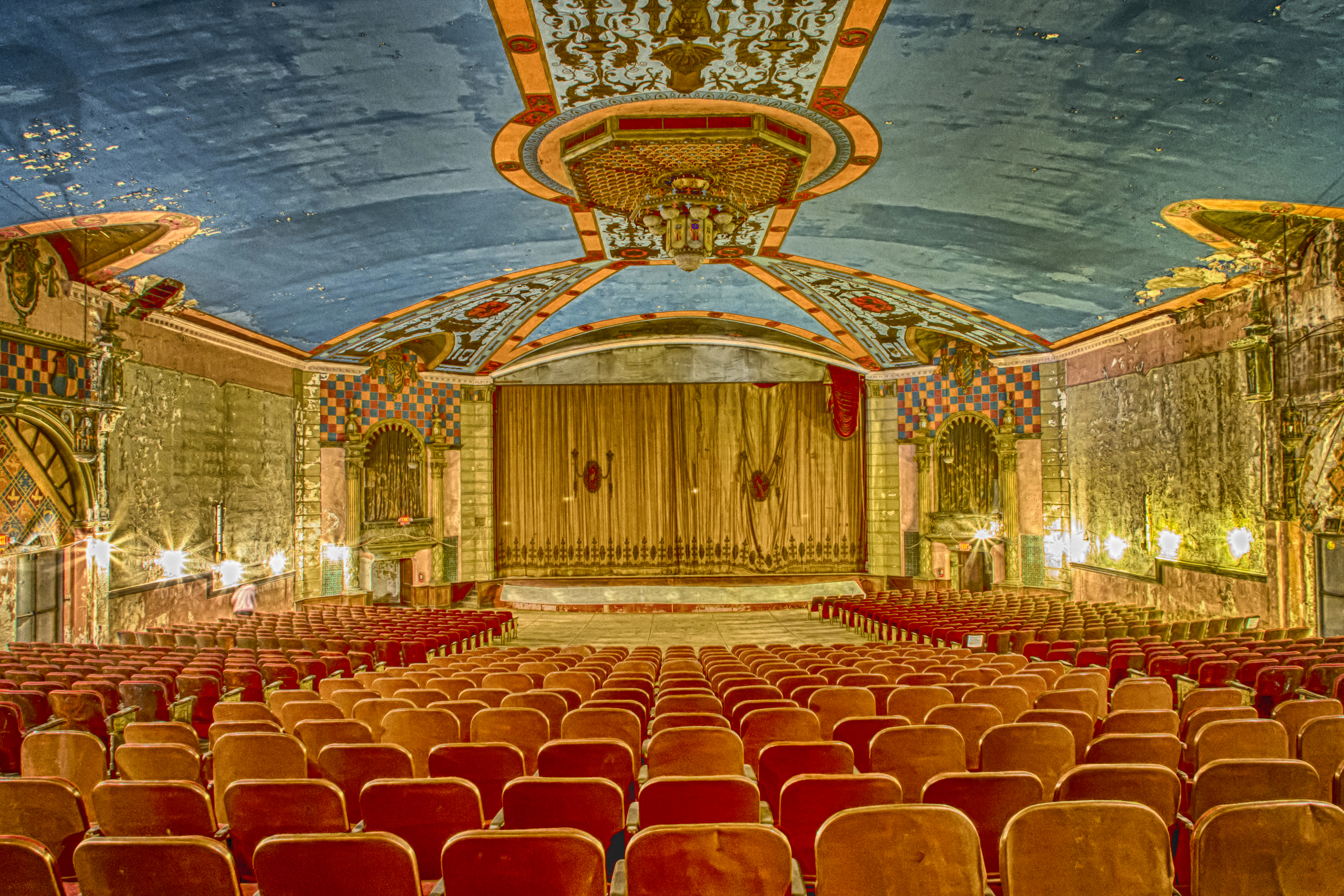 Previous Image Next Image Grand old movie theater Interior of declining vintage 1920’s movie theater.
