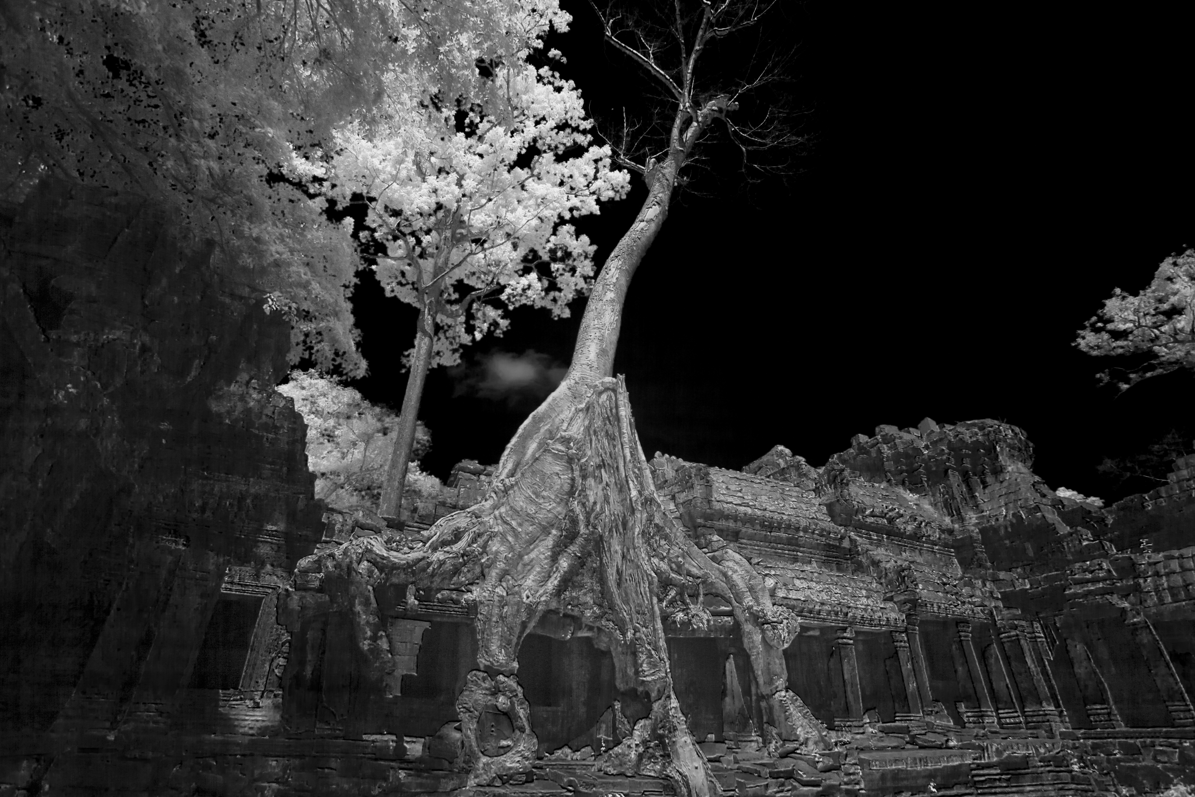 Previous Image Next Image Ruins of Preak Khan in Cambodia in black and white infrared Tree roots in ruins of Preak Khan, Angkor, Cambodia in infrared. converted to black and white.